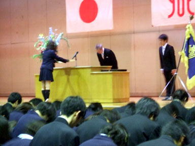 56回卒業式 3月1日(土)9時30分、在校生や多数の保護者が見守るなか、合唱部と音楽選択生徒によるハレルヤ合唱をバックに卒業生が緊張した面持ちで入場、全員による国家斉唱に続き、クラス単位に卒業生の名前が一人ひとり読み上げられ起立する、「卒業証書授与」が行われました。「学校長の言葉」に続き「PTA会長」「同窓会長」が祝辞を送りました。 「在校生代表の言葉」では多摩高校の伝統を教えてくれた卒業生に対する感謝とこれからさらにその伝統を引き継ぎ、発展させていく決意が述べられ、「卒業生の言葉」では代表が在学中に学んだことをこれからの新しい人生のなかで生かしていくことを力強く述べ、いずれも卒業式にふさわしい感動的な内容でした。 最後に卒業生による「校歌斉唱」ののち、吹奏楽部の生徒の演奏する「威風堂々」に送られ、卒業生がクラスごとに順次、退場し滞りなく厳粛な卒業式は終了しました。 卒業生が今後、母校のモットーである質実剛健・自重自恃を糧に成長し、大いに活躍することが期待できる粛々として凛とした素晴らしい卒業式でした。式を終えて学校長、副校長、同窓会会長も安堵しました。(写真) |